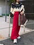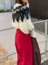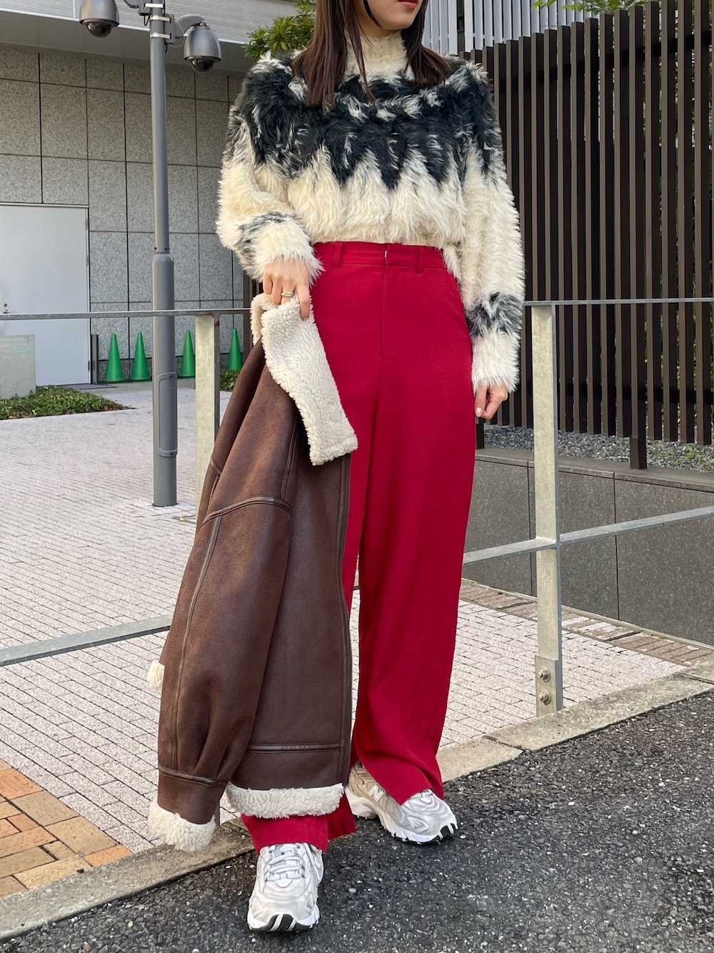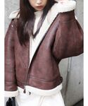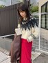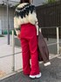 クリスマスカラーコーデ! 【ニット】ふわふわの生地感が触り心地良く着心地◎ショート丈でメリハリのあるスタイルに。ノルディック柄が冬らしい印象に。 【アウター】定番のムートン。柔らかい生地なので中に着込んでもごわつきにくいです。フェイクレザーではなく、フェイクムートンを使っているので着られた感もなくお使い出来ます。