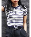辻村奈々(MURUA)のカーディガン/ボレロ「ミニマルチボーダーカーデトップス」を使ったコーディネート