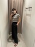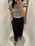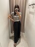ラフカジュアルコーデ! 【トップス】マルチカラーのボーダーがサマームード漂うデザイン。パイル風の生地感で柔らかく着心地も◎身体のラインに沿うようなシルエットでスタイルアップ効果もあり。 【ボトムス】ダブルヘムデザインが今年らしさ◎ハイウエストでスタイルアップ効果も抜群。太めのシルエットがモードな印象に。 【シューズ】細めのす華奢なデザインでカジュアルなコーデに女性らしさを。
