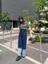 マリンカジュアルコーデ! 【トップス】ふわっとした着心地のメッシュニット。チクチクもせず着やすいです。コンパクトな丈感でハイウエストボトムと相性抜群。後ろが大きめに開いてるのもポイント。 【キャミソール】パット付きのキャミソールなので1枚でお使いできます。伸縮性のある素材で着心地もよく、程よく体に密着してくれるので、脇の開きなども気になりません。 【パンツ】トレンドの太めロールアップ風デザインデニム。ワイドなシルエットで着やすす、ハイウエストなのでスタイル良く見えます。