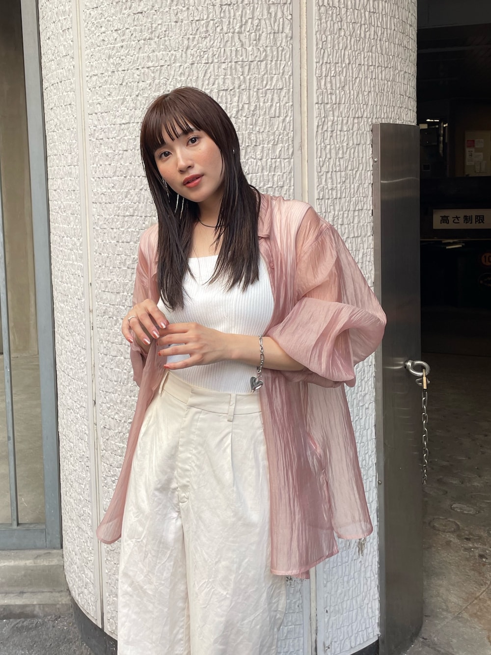 爽やか綺麗目コーデ! 【シャツ】今年も引き続きトレンドのシアーシャツ。微光沢のある素材をミックスさせており、定番ながらも他と差がつく仕上がりに。オーバーサイズで抜け感◎ 【トップス】毎年人気のタンクトップ。モチモチした生地で着心地◎二の腕が少し隠れるようなデザインなので1枚でも着やすいです。