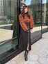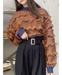 【トップス】フリンジのフリルが動きのあるニット。コンパクトなショート丈なのでスッキリと着膨れせず着れます。 【ボトムス】ジップで露出の調節が出来るスカート。ジップを開けるとミニスカートがチラリと見えるムルーアらしいデザインです。ハイウエストなのでウエスト周りもスッキリ、脚も長く見えます。
