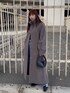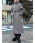 【アウター】トレンドのスタンドカラーのロングコート。シンプルな作りでどのジャンルにも合う万能アウター。袖のボリューム感が女性らしさをプラス。厚手のニットやスウェットも着込めます。上の位置にベルトがあるので閉めたスタイルでもスタイルアップ◎ワンピ風で着ても可愛いです。