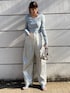 【トップス】伸縮性が高く、フィット感に優れた1枚。フロントのブランドロゴがアクセントに。 袖口にはフィンガーホールをあけている所もさりげないポイントです。 【ボトムス】コクーンシルエットで骨盤周りをカバーしてくれるデニム。メタリックのラメが散りばめられた他のカジュアルデニムと差がつくアイテムです。