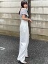女っぽコーデ! 【トップス】ムルーアといえばのチャイナデザイントップス。Uネックでもオフショルどちらでも使えるので気分やインナーによって着方を変えるのが◎ 【ボトムス】ウエストに調節金具がついたワイドデニム。タックが入っているのでワイドながらもメリハリのあるスタイルに。