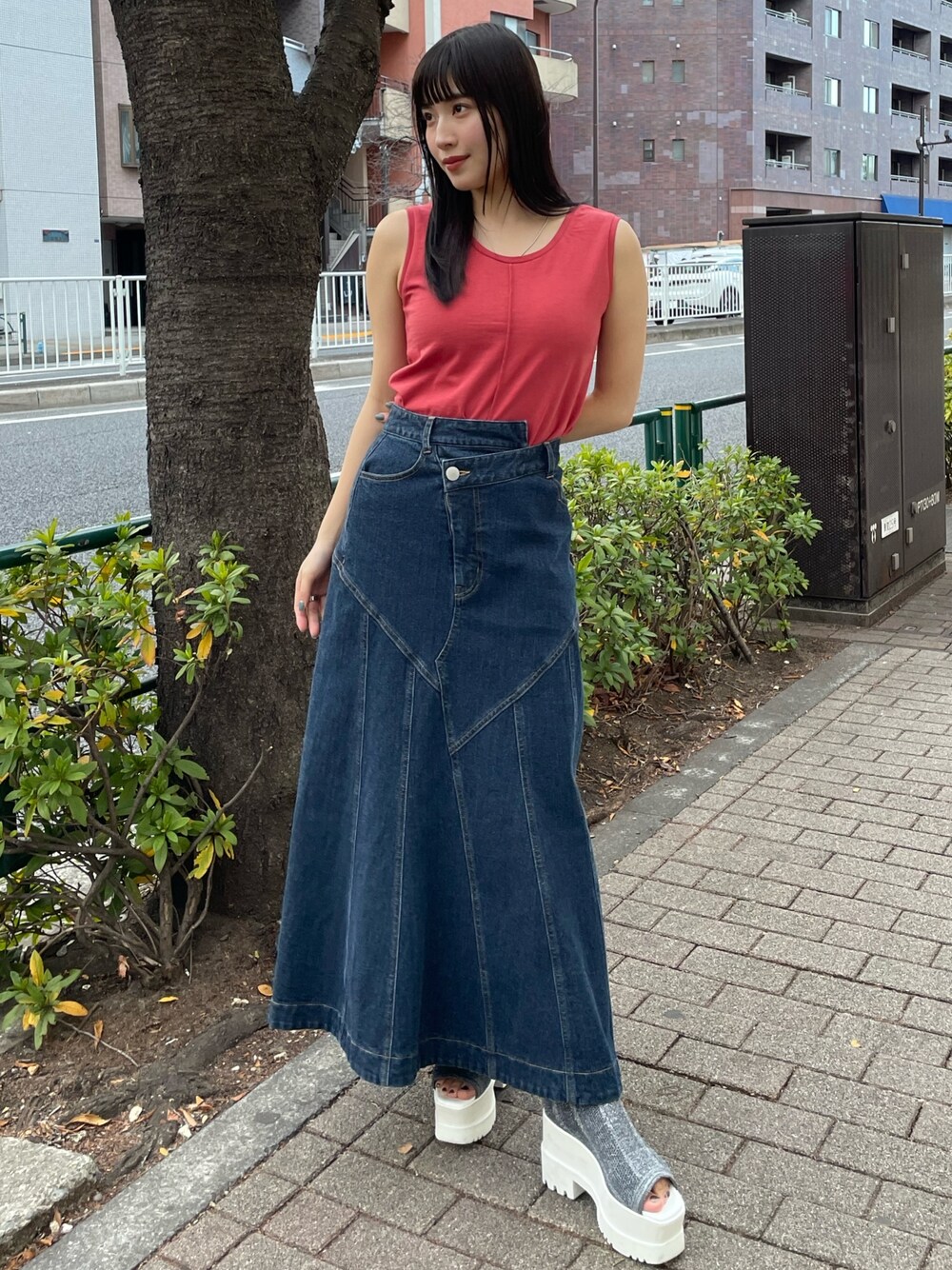 辻村奈々(MURUA)のタンクトップ「2WAYコンパクトカットソー」を使ったコーディネート