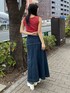 シンプルカジュアルコーデ 【トップス】前後ろどちらでも使える2wayタイプのトップス。 【ボトムス】フロントデザインがアシメで存在感ありつつ、伸縮性のあるデニム生地なので履きやすさも兼ね備えた使い勝手のいいデニムスカートです。