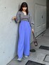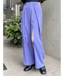 女子会コーデ! キャミとカーデのアンサンブルは使い回し抜群!デコルテも華奢見えで女性らしさアップ。 パンツは膝のところに縦スリットが入っており程よい肌見せで大人っぽさ演出。スラックス素材でかっちり雰囲気にも。