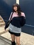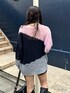 WEB限定ニット。配色がおしゃれで着るだけでこなれ感アップ。ワンショルにも着れるので雰囲気替えも◯程よい肌見せが女性らしさアップ。