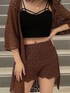 同系色でまとめてクロシェニットをセットアップでリゾート感のあるコーデを組みました❤︎ 新色のブラウンはリゾート感があって可愛いですよね!コーデに取り入れやすいベーシックなカラー展開になっているので、普段使いもとってもしやすいです◎軽くてサラッと羽織るだけでオシャレに見せてくれるこのカーディガンは、やっぱり毎年人気のアイテムです! パンツの丈間は短すぎず、また裏地が付いているので透け感はなく着用して頂けます。交互の柄の編地が違うデザインになっているのもポイントです。 足元はジュート巻きがよりリゾート感を出してくれるサンダルで合わせています。足首にストラップがあるデザインなので、脱げにくくしっかり固定してくれるので靴擦れもしにくいアイテムです❤︎ヒールは12cmあり少し高く思いますが、ソールが5cmもあるの安定感もあって歩きやすいですよ! GYDAらしさを加えるため、カーディガンの中はビスチェで合わせて肌見せも♪カーディガンやシャツなど何かを羽織るコーデは首元や胸元が少し開いたアイテムと合わせるとスッキリして見え、女性らしさも出るのでオススメです。