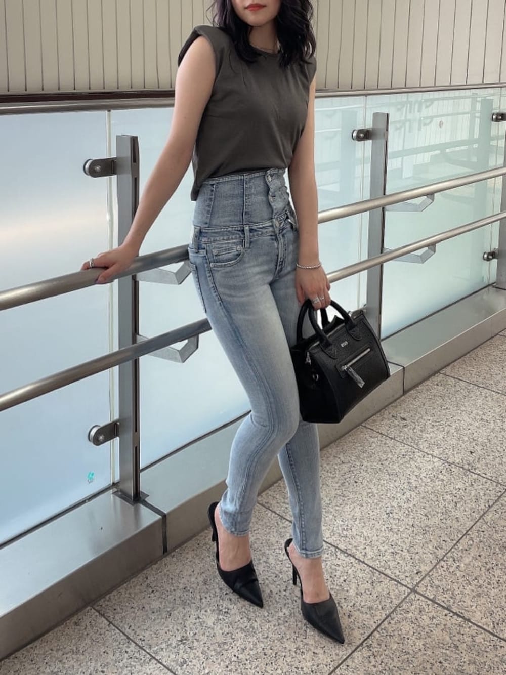肩パッドが入ったTOPSは今年のトレンドアイテムになっていますよね❤︎GYDAからもやっと発売されました!! 肩パッドが肩を覆ってくれるので、華奢見えするTOPSです。シンプルなデザインなのでデニム、スカート問わず合わせやすいアイテムです! 私はノーダメージのデニムとミュールで合わせてシンプル大人コーデにしました❤︎ この時期アイスブルーのデニムに目が惹かれますが、店頭でお客様とお話ししていると"脚が太く見えるから"と苦手意識がある方が多くなかなか挑戦できないとお声をよく耳にします。実際私も同じく苦手意識がありました!ですが、GYDAのこのH/Wボタンスキニーデニムは他にはないくらいウエストの位置が高く、コルセットをしているかの様にくびれて見えるので脚長効果抜群+横のステッチも足首にかけて内側にデザインされているので美脚効果まであるデニムなので、苦手意識があった私もアイスブルーのデニムを抵抗なく履けるようになりました♪ ぜひ一度店頭で試して頂きたいデニムです❤︎
