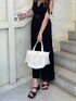 夏の暑い時期にサラッと1枚で着れるアイテムってとっても魅力的ですよね❤︎ シンプルなデザインで大人っぽい印象のロンパースです。ボトム部分に異素材のプリーツがあるのがポイントで、歩く度に裾が広がり涼しげな足元を演出してくれますよ! 同生地のベルトを付けることでウエストマークされて、メリハリのあるスタイルになります。 胸元と背中の肌見せがGYDAらしいデザインですよね!また全体的にシンプルだからこそ肩のリボンのデザインが映えて可愛いですよ♪ 海にドライブに行くイメージでコーデを組んだので、足元はあえてローヒールのサンダルで歩きやすくカジュアルに❤︎ フリンジBAGでシーズンムードも出してみました!