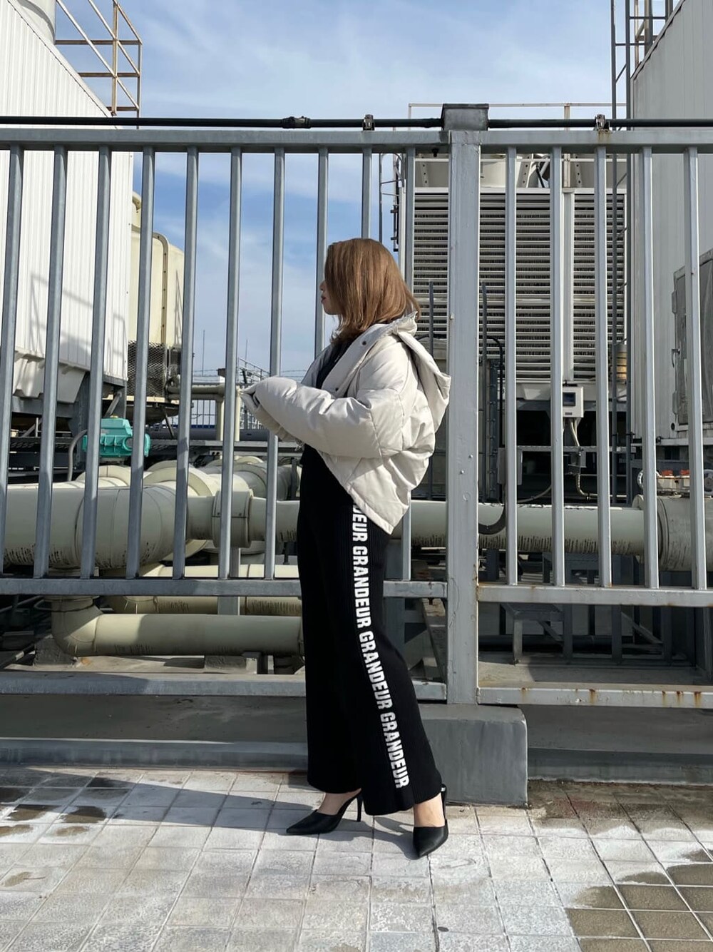 ゆるっとしたシルエットが可愛い、ラフなセットアップのご紹介❤︎ 【TOPS/パンツ】袖山部分に上下同じ"GRANDEUR"(スペイン語意味:気高さ・高貴さ)のロゴジャガードが施されています。リブ編みで着心地の良い糸を使用しているのでストレスフリーで着用できます!パンツは160㎝でヒールを履かないで丈感はピッタリでした。パンツの長さが気になる方は、ハイウエストで履いて、ヒールがあるものと合わせて頂ければ大丈夫かと思いますよ♪ 【ダウン】去年から流行りのレザーダウンがGYDAでも発売されています!!いつものコーデに合わせて頂くだけで、簡単にトレンド感がでますよ〜 リアルダウンが80%、フェザーが20%入っているので軽いのにしっかり暖かい、オススメのアウターです。