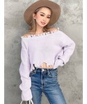 miyu(GYDA)のニット/セーター「グラインダーオフショルニットトップス」を使ったコーディネート