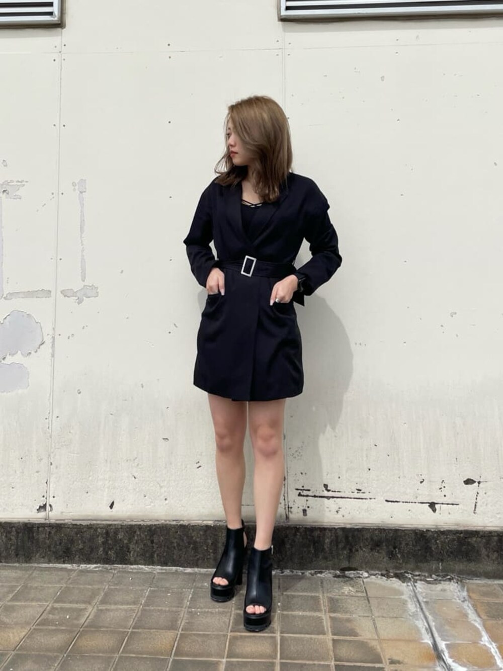 オールブラックできれいめ大人コーデ❤︎ 【ワンピース】デイリー使いはもちろん、デートやディナーなどにも着回せる優秀なワンピースです。胸元は深めに開いているので、インナー合わせやネックレスはマスト!私は身長160センチですが、ミニ丈すぎず、程よい丈間でした!サラッとした生地感です。ウエストマークが出来るので、ボディーラインにメリハリができてスタイルアップ効果◎ 【ブーツ】靴底のゴツゴツとしたタンクソールがポイント!ヒールは少し高めですが、ストラップで足首をしっかり固定してくれるので安定感もあります。ヒールも太めとタンクソール部分にも高さがあるので歩きやすいですよ♪ ワンピースをデイリー使いする時は、私みたいに足元を少しカジュアルに合わせると抜け感がでるのでおすすめです!
