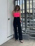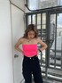 トレンドカラーのピンクを使ったカジュアル夏コーデ❤︎ 【ビスチェ】ベアビスチェって落ちやすい、ズレると思ったことはありませんか?このベアビスチェは上下にかなりしっかりとしたゴムが入っているので、落ちない、ズレないストレスフリーで着て頂けます!着用した時にすごくキツイわけではなく、しっかり伸縮性もあるので程よい締め付け感がありました。肉厚なパッドも入っているので1枚で着用出来ます◎背中のGGロゴがワンポイントで可愛いですよね❤︎ 【デニム】サイドにランダムでダメージがあるワイドデニムです。綿100%とは思えないほど、柔らかく履きやすいです!丈感は少し長めで、160センチでSを着用していますが、5センチ以上のヒールと合わせると丁度良い丈間でした!スニーカー合わせがしたい方は大胆にロールアップしても可愛いと思いますよ。ワイドデニムにタイトなTOPSは、スタイルアップして見えるのでおすすめコーデです♪ 【サンダル】クリアサンダルって靴擦れするイメージありませんか?このサンダルはクリア部分がとっても柔らかいので私は靴擦れすることなく履くことが出来ました!私は24.0センチの幅広めなのでLサイズを履いています。