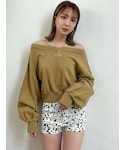 秋のきれいめカジュアルコーデ❤︎ 【TOPS】スウェット生地のショート丈のオフショルTOPSです!胸元にTOPSと同色のロゴ刺繍がワンポイントにデザインされていて、袖にボリュームがあるのが可愛いオススメポイントです!シンプルなのでボトムスは選ばず、着回し抜群のアイテムですよ。 【デニム】シルエットが綺麗な美脚になれるデニムのフレアパンツです!GYDAで大人気のおしりの下にダメージがあるBACK RIPPEDのデザインになっています。裾の加工感が私的に推しポイントです!シルエットに拘ってデザインされたデニムなので、驚くほど脚が盛れますよ♪ 【ミュール】定番のポインテッドミュールはデニムとの相性が特に良く、足が綺麗に見えるようにヒールの高さなど拘ってデザインされています。私は24.0センチで足幅が広いので、Lサイズを履いています!