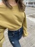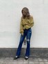 秋のきれいめカジュアルコーデ❤︎ 【TOPS】スウェット生地のショート丈のオフショルTOPSです!胸元にTOPSと同色のロゴ刺繍がワンポイントにデザインされていて、袖にボリュームがあるのが可愛いオススメポイントです!シンプルなのでボトムスは選ばず、着回し抜群のアイテムですよ。 【デニム】シルエットが綺麗な美脚になれるデニムのフレアパンツです!GYDAで大人気のおしりの下にダメージがあるBACK RIPPEDのデザインになっています。裾の加工感が私的に推しポイントです!シルエットに拘ってデザインされたデニムなので、驚くほど脚が盛れますよ♪ 【ミュール】定番のポインテッドミュールはデニムとの相性が特に良く、足が綺麗に見えるようにヒールの高さなど拘ってデザインされています。私は24.0センチで足幅が広いので、Lサイズを履いています!