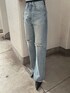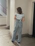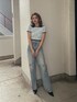 ワントーンカラーコーデ❤︎ 【TOPS】タイル柄のGGロゴのデザインが可愛いTOPSです!ボートネックとオフショルで着て頂けます♪首元、袖、裾がリブになっているので全体的に引き締めてくれます。柄部分と土台部分の編み糸が違うので、立体感もありますよ!柔らかい生地で、肌触りもとっても良いです! 【デニム】GYDAでは珍しいストレートデニム!膝上のダメージが、目線を高く持って向けてくれるので脚長効果がありますよ。裾のスリットも抜け感があり、シンプルすぎないデザインになっています!160センチでSサイズを緩めに着用しています! 【ミュール】GYDAで定番のポインテッドミュール。デニムとの相性が特に良く、足が綺麗に見えるようにヒールの高さなど拘ってデザインされています。私は24.0センチで足幅が広いので、Lサイズを履いています!