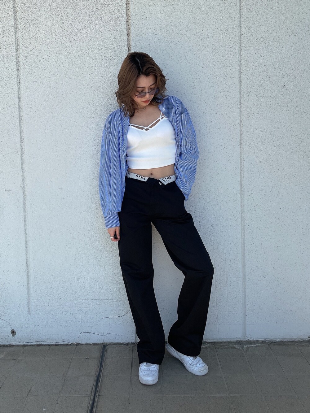 Y2Kコーデ❤︎ 【シャツ】ハリ感がある着回し抜群なシャツです!ちょうどいい丈感なので合わせるボトムスは問わず、パンツインもしやすいところがおすすめポイントです!襟元にGGの刺繍が入っているので、GYDAならではのシャツになっています。綺麗めにもカジュアルにも使える万能アイテムですよ! 【インナー】GYDA定番のビスチェです!胸元のバインダーデザインが可愛く、パット入りなので1枚で着用可能となっています。胸元が開いたTOPSのインナーとしても使って頂けますよ! 【パンツ】流行りのY2Kファッションが簡単に出来るアイテムです!折り返してきて頂くとGYDAのロゴ入りになっているのが可愛いですよね!折り返さずに履くと、ハイウエストのウエスト位置になっています。ルーズなシルエットなので、脚のラインは拾わずどんな方にでも履いて頂きやすいパンツです。