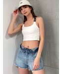 カジュアルスポーティーコーデ❤︎ 【ビスチェ】肩紐がジャガードゴムでGYDAロゴが入ったデザインのビスチェです!パット入りなので一枚で着用可能です!伸縮性があり身体にフィットしてくれるので着心地もとってもいいですよ。 【パンツ】トレンドのインナーパンツのバンテージ見せスタイリングが1枚で簡単に完成するパンツです!左腿のダメージがGYDAらしいデザインで、スウェット生地になっています。裾は少し広がったシルエットなので、スウェットパンツでもスタイルアップして見えるアイテムです! 【サンダル】ボリュームソールが特徴の脚が盛れるスポーツサンダルです。とっても軽く、ソール部分がクッションの様に柔らかいので歩きやすく疲れにくいですよ!足の甲と足首をしっかり固定できるので、靴擦れすることなく履けますし、デイリー使いから夏のイベントにもおすすめのアイテムです。24.0センチでMサイズを履いています。