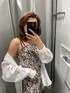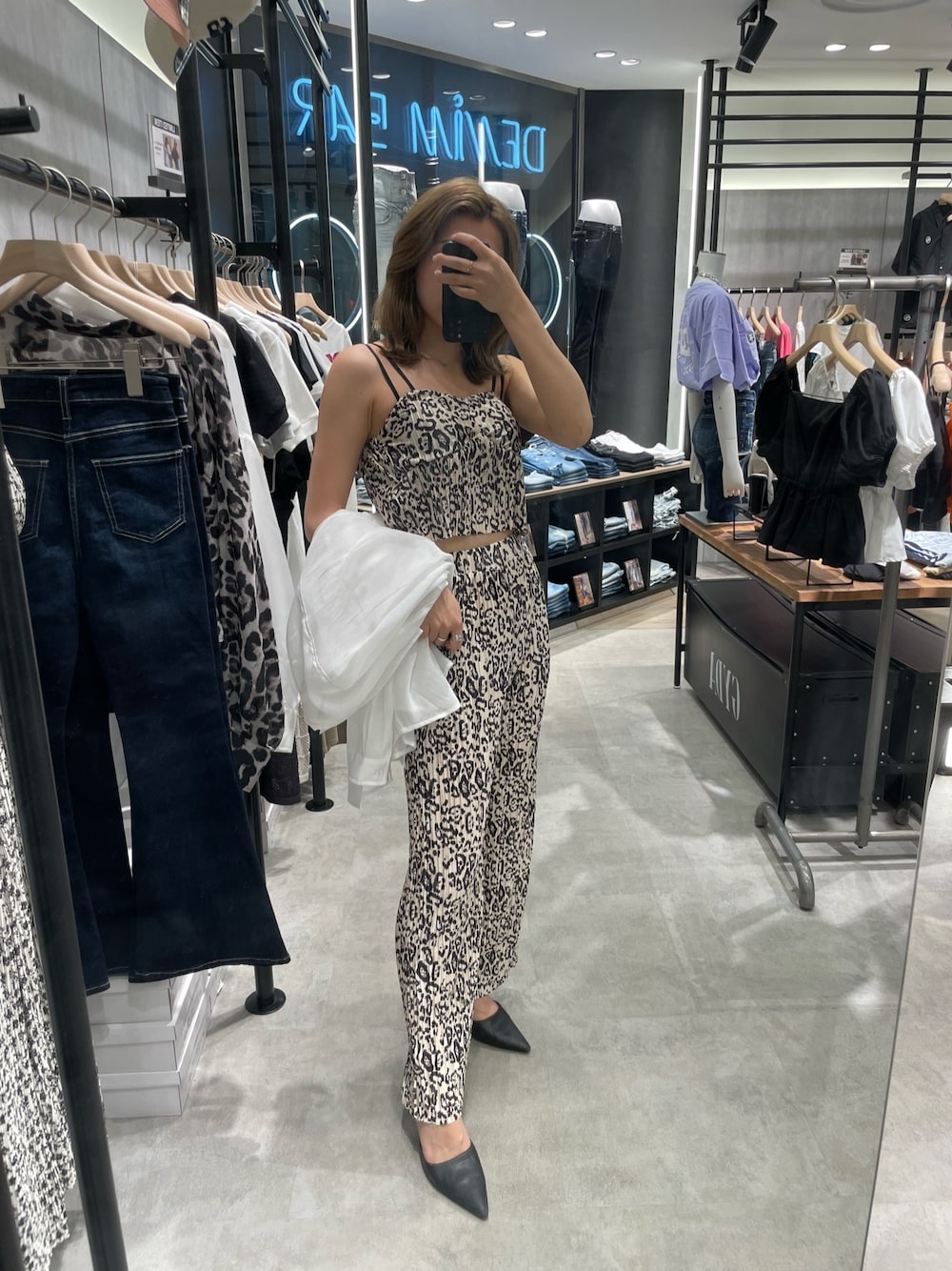 人気セットアップコーデ❤︎ 【シャツ】毎年大人気のシアーシャツです!これからの季節には欠かせない、透け感がある軽いシャツになっています。真夏の紫外線予防対策などで羽織るアイテムとしてもとってもかなりオススメです!流行り廃りがないアイテムなので、重宝すると思います。 【セットアップ:ビスチェ】サテン生地でサラッとしていて、これからの季節に涼しく着て頂けるアイテムです!厚手のパットが入っているので、1枚で安心して着用できますし、肩紐にはアジャスターが付いているので調節も可能になっています!中にTシャツなどをレイヤードしても可愛いですよ〜♪ 【セットアップ:パンツ】ビスチェと同様、サテン生地のプリーツ加工されています。ウエストがゴムでサラッとした肌触りなので、ストレスフリーで着て頂けます!160センチ以上の方はスニーカーでも、裾は引きずらない丈感です。ビスチェがショート丈で、パンツはハイウエストなのでヒールで合わせてあげた方がよりスタイルアップして見えます! 【ミュール】どんなコーデにでも合わせて頂ける定番アイテムです。つま先部分が深めに作られているので、脱げる心配もなく履いて頂けますよ!脚が綺麗に見えるようなヒールの高さやデザインなので一度履いたらリピートするアイテム間違いなしです!24.0センチで足の横幅が広いのでLサイズを履いています。