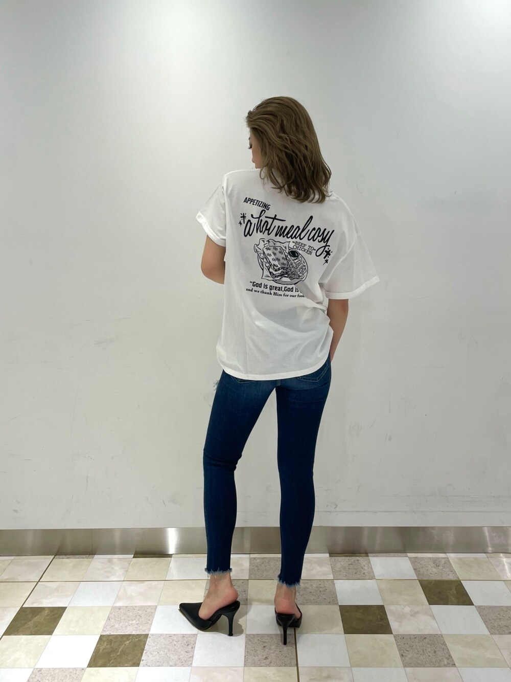 カジュアルデニムコーデ❤︎ 【TOPS】襟下と袖口にカットダメージがあるGYDAらしいルーズなシルエットのTシャツです。フロントはGGのシンプルなデザインですが、バックはインパクトのある可愛いアートデザインになっています!160センチの私が着用してお尻にかかるくらいの丈感になっています。オーバーサイズすぎないので、シャツなどを羽織りアイテムもサラッと羽織って頂きやすいと思います! 【デニム】サイハイ部分にダメージの入ったセクシーなデニムです。裾部分が切りっぱなしになっているので足首周りがスッキリして見えますし、低身長の方でも丈があまりすぎることがないのでとってもおすすめです!160センチでSサイズを着用しています。 【ミュール】どんなコーデにでも合わせて頂ける定番アイテムです。つま先部分が深めに作られているので、脱げる心配もなく履いて頂けますよ!脚が綺麗に見えるようなヒールの高さやデザインなので一度履いたらリピートするアイテム間違いなしです!24.0センチで足の横幅が広いのでLサイズを履いています。