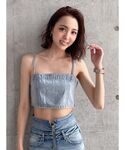 トレンド双子デニムコーデ❤︎ 【TOPS】バックスタイルのレースアップが可愛いアイテムです!サイドにファスナーが付いているので、着脱が楽チンでした。前屈みになっても胸元が大きく開かないので安心感もありますよ!肩紐は三段階で調節可能になっています。 【デニム】三つボタンのハイウエストスキニーデニムです。後ろがクロスになっているGYDAならではデザインで、ショート丈のTOPSと合わせると程よい肌見せが可愛いですよ♪ダメージデニムの露出感が苦手な方にもおすすめのスキニーデニムです! 【サンダル】今年は2ラインのデザインになり、より脱げにくく安心感のあるアイテムになりました!いつものコーデに取り入れるだけで季節感がグッと出ます◎横幅も広く作られているので、ワンサイズ上げずに履いて頂けます。私は24.0センチでLサイズを買いました!