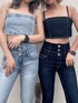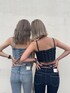 トレンド双子デニムコーデ❤︎ 【TOPS】バックスタイルのレースアップが可愛いアイテムです!サイドにファスナーが付いているので、着脱が楽チンでした。前屈みになっても胸元が大きく開かないので安心感もありますよ!肩紐は三段階で調節可能になっています。 【デニム】三つボタンのハイウエストスキニーデニムです。後ろがクロスになっているGYDAならではデザインで、ショート丈のTOPSと合わせると程よい肌見せが可愛いですよ♪ダメージデニムの露出感が苦手な方にもおすすめのスキニーデニムです! 【サンダル】今年は2ラインのデザインになり、より脱げにくく安心感のあるアイテムになりました!いつものコーデに取り入れるだけで季節感がグッと出ます◎横幅も広く作られているので、ワンサイズ上げずに履いて頂けます。私は24.0センチでLサイズを買いました!