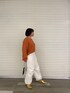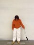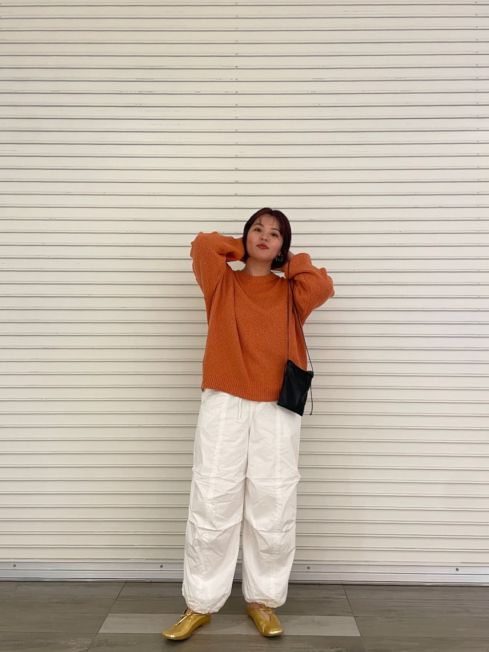 カラーニットコーデ🧶🧡 ちくちく感ゼロの春ニットが登場です😊 ボトムもホワイトで明るいトーンで合わせてみました! ニットはコットン100%のスラブ糸で ぽこぽこした素材感が特徴です! 皆様大好きなお尻も隠れるUngridらしさのある丈感になっております✌🏽 ミリタリーパンツは、 ホワイトのみ裏地も入っていて透け感気にせず着用していただけます🏳️🌈