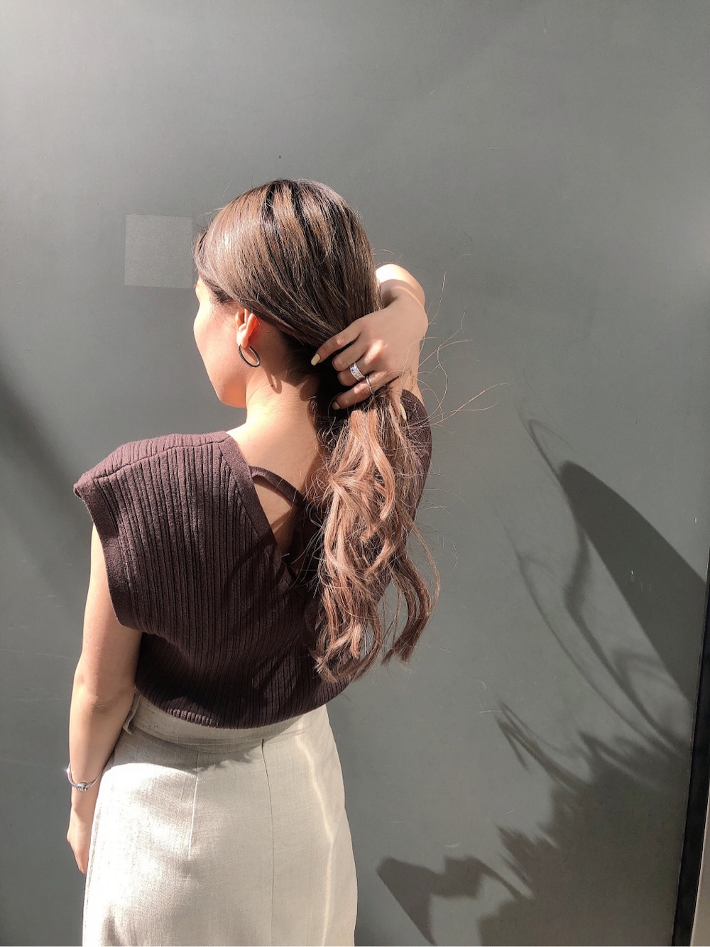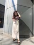 茶系をベースに柔らかい色味を使った大人な綺麗めコーデ。【skirt】ストレートシルエットの綺麗めスカート。リネン素材とウエストと裾のフリンジが春夏にピッタリ!ウッド調のバックルもポイントです♡バックスリットがしっかり入っているので低身長の方でも着用しやすく、とても歩きやすいです◎今回はアイボリーをチョイスし明るさをプラスしました。【tops】デコルテを綺麗に見せてくれるVネックとバックリボンがより女性らしさを演出。リブ素材のカシュクールニットなのでデザイン性もばっちり◎柔らかくコンパクトサイズなのでインナーとしても使いやすくインもしやすいです!