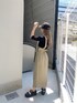 MURUAで大人気のジャンパースカートが春夏仕様にアップデート★ ハイウエストデザインが腰位置を高く見せ、更にフロントのジップが脚長効果も出してくれます♡ シンプルなデザインが様々なtopsに合わせやすく、カジュアルから綺麗めまで幅広いシーンで着用頂けます。 【tops】ネックがアシメントリーデザインになっておりデコルテを綺麗に見せてくれます。バックの華奢なリボンが女性らしさ◎ 【shoes】SHAKAコラボのMURUA限定デザインシューズ。軽量で歩きやすさ抜群!5cmの程よい厚めソールがスタイルアップも叶えてくれます。アッパーのメッシュデザインが綺麗めコーデの外しアイテムとしてもぴったりです。