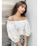 【tops】ボリューム感のあるオフショルブラウス♡シンプルなデザインが使いやすさ◎長すぎず短すぎない丈感がIN/OUTどちらもしやすいのでコーデによって変えて頂けます。スカートと合わせると女性らしく、カジュアルにデニム合わせも♡ボリューム感があるので小柄な方は細身のボトムを合わせるのがおすすめです!【skirt】オールシーズン使えるペンシルスカート。深めに入ったスリットとフロントのZIPがキレイめにもカジュアルにも使えます♪しっかりした生地感なのでラインが出過ぎずナチュラルなシルエットで着用頂けます。
