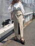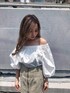【tops】ボリューム感のあるオフショルブラウス♡シンプルなデザインが使いやすさ◎長すぎず短すぎない丈感がIN/OUTどちらもしやすいのでコーデによって変えて頂けます。スカートと合わせると女性らしく、カジュアルにデニム合わせも♡ボリューム感があるので小柄な方は細身のボトムを合わせるのがおすすめです!【skirt】オールシーズン使えるペンシルスカート。深めに入ったスリットとフロントのZIPがキレイめにもカジュアルにも使えます♪しっかりした生地感なのでラインが出過ぎずナチュラルなシルエットで着用頂けます。