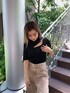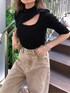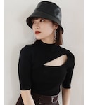 胸元のちょい肌見せがレディムード高まるデザインニット♡開きすぎない程よいスリットとタイトなシルエットがカジュアルなコーデにも女性らしさをプラスしてくれます。コンパクトなサイズ感なのでトップスとしてもインナーとしても使いやすいです◎ニットですがドライタッチ素材を使用してるのでさらりとした質感と清涼感のある生地が晩夏にもぴったり♪今回はカジュアルなワイドデニムを合わせてますが、タックパンツやスカートなどの綺麗めボトムとの相性も良いのでおすすめです!