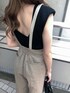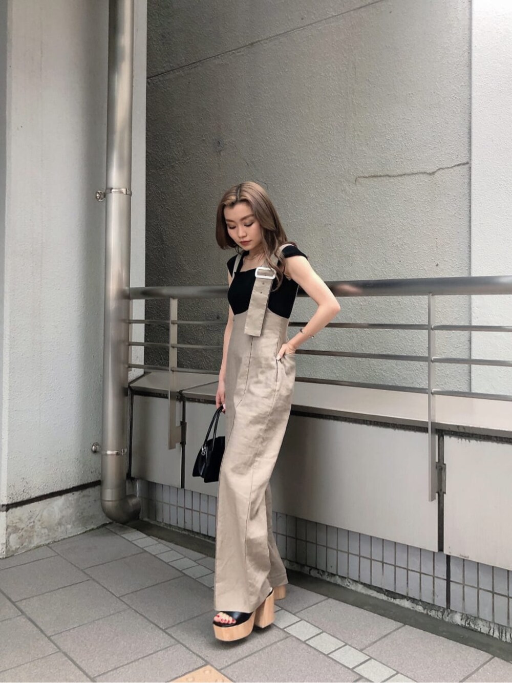 ▶︎▶︎着るだけでスタイルアップできる定番ロンパースコーデ♪ 【ロンパース】脚長効果抜群!今から真夏まで着回せるハイウエストのロンパースです。麻調の生地を使用しておりこれからの季節にも涼しく着用できます。肩のレザーベルト部分は取り外し可能でワンショルダーとしても◎ウエスト周りがフィットするので着膨れしにくくメリハリのあるシルエットになります。ピッタリしたトップスを合わせるとカジュアル過ぎず女性らしい雰囲気に♡ 【tops】カラーバリエーションが豊富な夏の定番タンク!インナーにもトップスにもできる万能itemです♡バックはアシンメトリーデザインになっておりシンプル過ぎないアクセントに◎フィットしすぎずお肌に張り付かないので夏もサラッと着て頂けます! 【shoes】ウッドの厚底が目を引くサンダル♪甲を幅広くホールドし、安定感のある太めヒールで履きやすいです。どんなスタイルにも合う1足あると便利な定番サンダルです♡