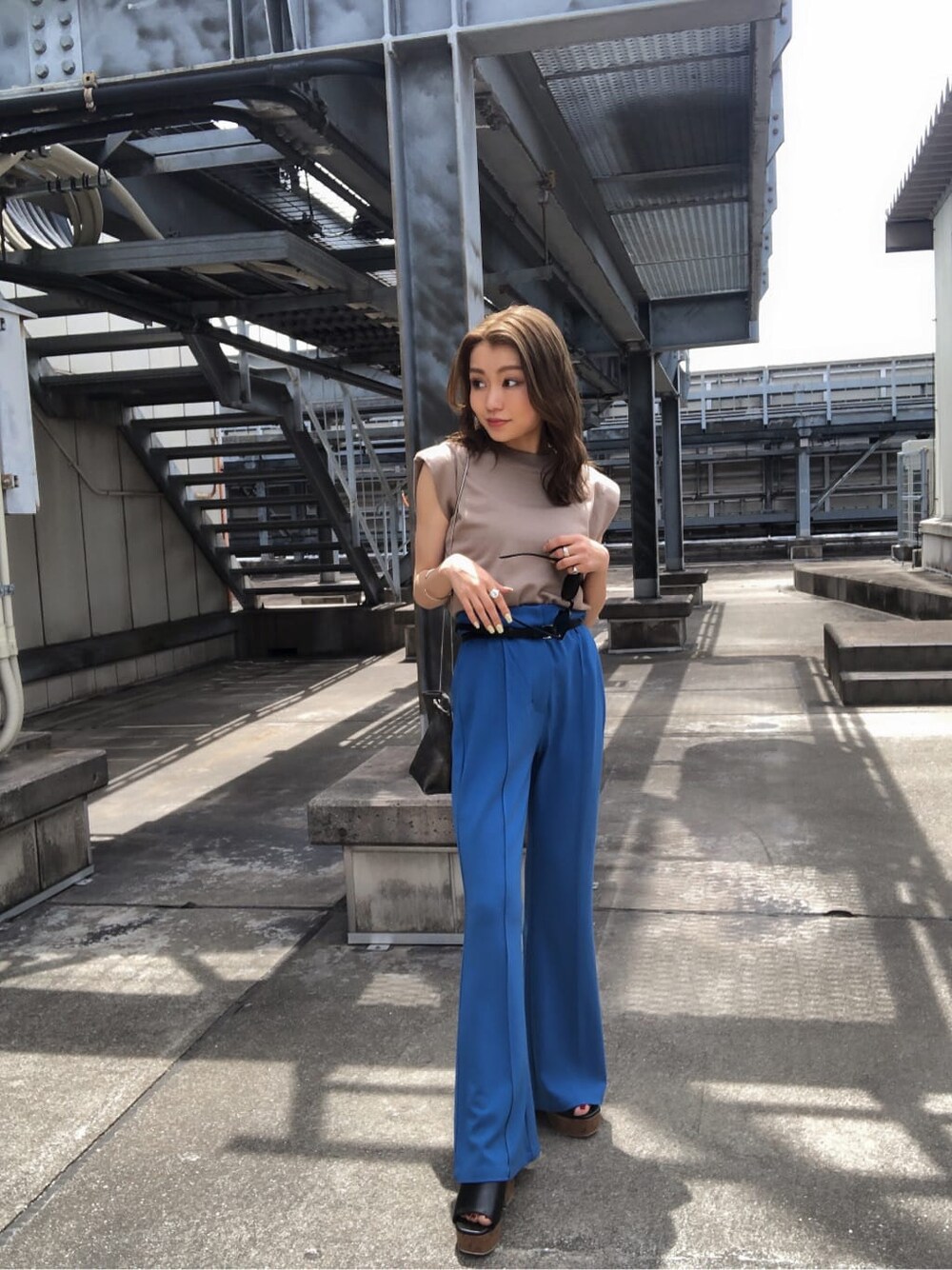 ▶︎▶︎▶︎トレンドのカラーパンツが主役のシンプルstyling♩【tops】肩パット入りのニットタンク。ボックスシルエットのルーズなサイズ感が大人っぽい印象になります。IN/OUTどちらのスタイルも楽しめるシンプルなデザインなので着回し力抜群です◎【pants】カットソー素材で伸縮性もあり、着心地抜群のフレアパンツです。トレンドのカラーがおすすめ!とにかくシルエットが綺麗です♩私はウエストが少し大きいのでベルトでハイウエスト位置に固定してます!【shoes】ウッドの厚底ヒールがPoint!甲を広く覆うデザインが安定感抜群。さらにとても軽くて長時間履いても疲れにくいです♡少し小さめのサイズ感です。