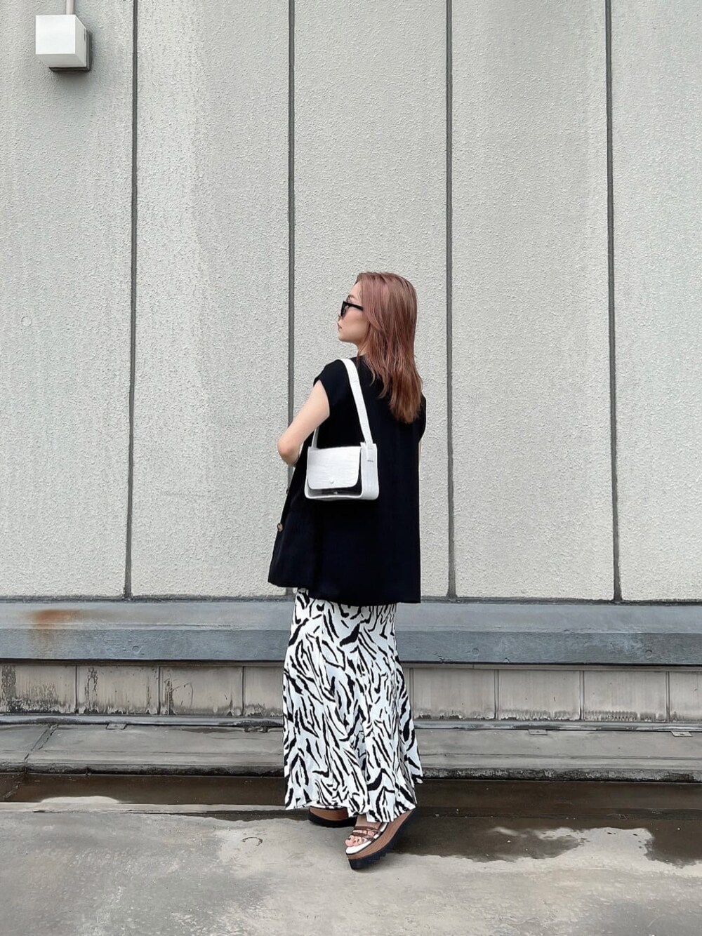 ▶︎▶︎▶︎カジュアルなモノトーンstyling♩【skirt】MURUAの定番!シルエットにこだわった大人気のマーメイドスカートです。薄手の生地で肌触りが良く暑い夏にもぴったり♡深めに入ったバックスリットで歩きやすさも抜群◎3サイズ展開なのも嬉しいポイントです。カジュアルからキレイめまで幅広く使える万能itemです!148cmだとxsでくるぶし上ぐらい、Sでくるぶしにかかるぐらいの着丈です。【vest】軽い素材を使用した着心地の良いベスト。着丈が長めなので気になる腰周りのカバー◎肩幅も広めのデザインなので二の腕カバーはもちろん、大人っぽい印象になります。