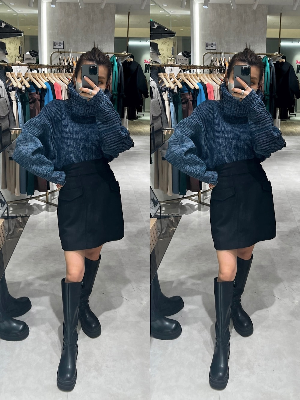 ▶︎▶︎▶︎【tops】毎年大人気のMURUA定番ニット!小顔効果抜群の大きいタートルネックがPoint◎もちもちとした柔らかい生地感で着心地の良さも◎今年は着るだけでお洒落見えするMIXカラーが登場しました♡【skirt】ベーシックで着回し力抜群のミニスカート!中にインナーパンツが付いており安心♡ハイウエストと切り替えで脚長効果抜群ながらウエスト後ろはゴムで楽ちんです!148cmだと膝上拳1コ半ぐらいです!【shoes】丸いフォルムとボリューミーなシルエットがPointのロングブーツ!厚めのソールがトレンド感もありカジュアルな印象に♡柔らかく軽いので履きやすさも◎