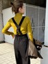 ▶︎▶︎▶︎女っぽいカジュアルなカラーコーデ♩【tops】人気のZIPデザイン!胸元の程よい肌見せが女性らしさと抜け感をプラスしてくれます♡タイトシルエットなのでアウターのインナーにもおすすめです◎【pants】サスペンダーは取り外し可能◎ウエストベルトとピンタックで美脚効果もばっちり!148cm、Sサイズ着用でヒール履いて丁度いい丈感です♡【outer】コクーンシルエットがハードな印象になりすぎず女性らしい印象で着用できる定番ライダース!148cmだとお尻に被るぐらいの丈感です♡【shoes】トレンド感のある厚底ヒールタイプのローファーです!他にはないデザインがコーデのアクセントに♡