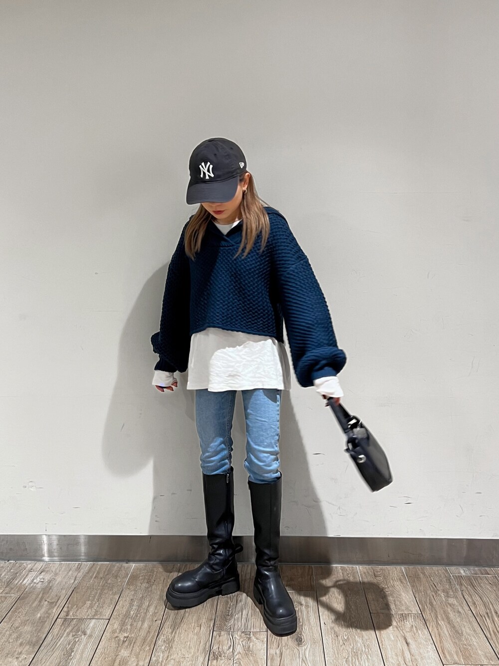 ▶︎▶︎▶︎オシャレ見えする大人カジュアルstyling♩【tops】セーラーカラーがポイントのクロップド丈ニット!程よいボリューム感で丸みのあるシルエットも魅力♡ハイウエストボトムとはもちろんですが、今回のようにレイヤードスタイリングもおすすめです◎【shoes】丸いフォルムとボリューミーなソールがポイントのロングブーツ!厚めのソールがトレンド感とカジュアル感をプラス◎柔らかく軽いので履き心地抜群!デイリー使いにおすすめです♡