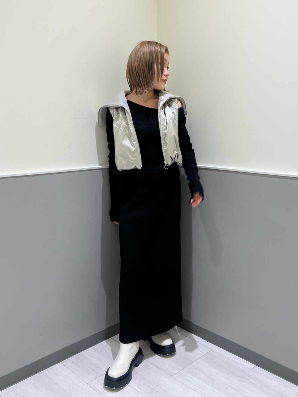 《アウター着回しコーデ》 【outer】トレンドのメタリックアウター!コーデの主役アイテムに♡ボレロとベストは取り外し可能で着回し力抜群!今回はベストのみで着用してます。クロップド丈でスタイルアップできます! 【tops】ヘルシーな肌見せが楽しめるタイトニット。鎖骨が綺麗に出るデザインで華奢見え効果も◎豊富なカラバリも魅力! 【skirt】伸縮性のある素材でストレスフリー!ウエストもゴム仕様で楽ちんのニットスカートです。バックスリット入りで歩きやすさも◎148cmだとくるぶし丈です! 【shoes】カジュアル派さん必見!インソールでさりげなくスタイルUP♡キレイめコーデのハズしアイテムとしても◎