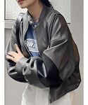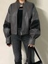 ブラックコーデ♩ 【outer】トレンドのバイカーブルゾン!同色のブロッキングデザインで定番のレザーをアップデート♡コンパクトなサイズ感で低身長さんにもおすすめです! 【tops】mumuロゴ入りロンT♡ロゴ部分のさりげない肌見せがPoint◎シンプルなデザインと程よくフィットする素材感が普段使いにおすすめです。
