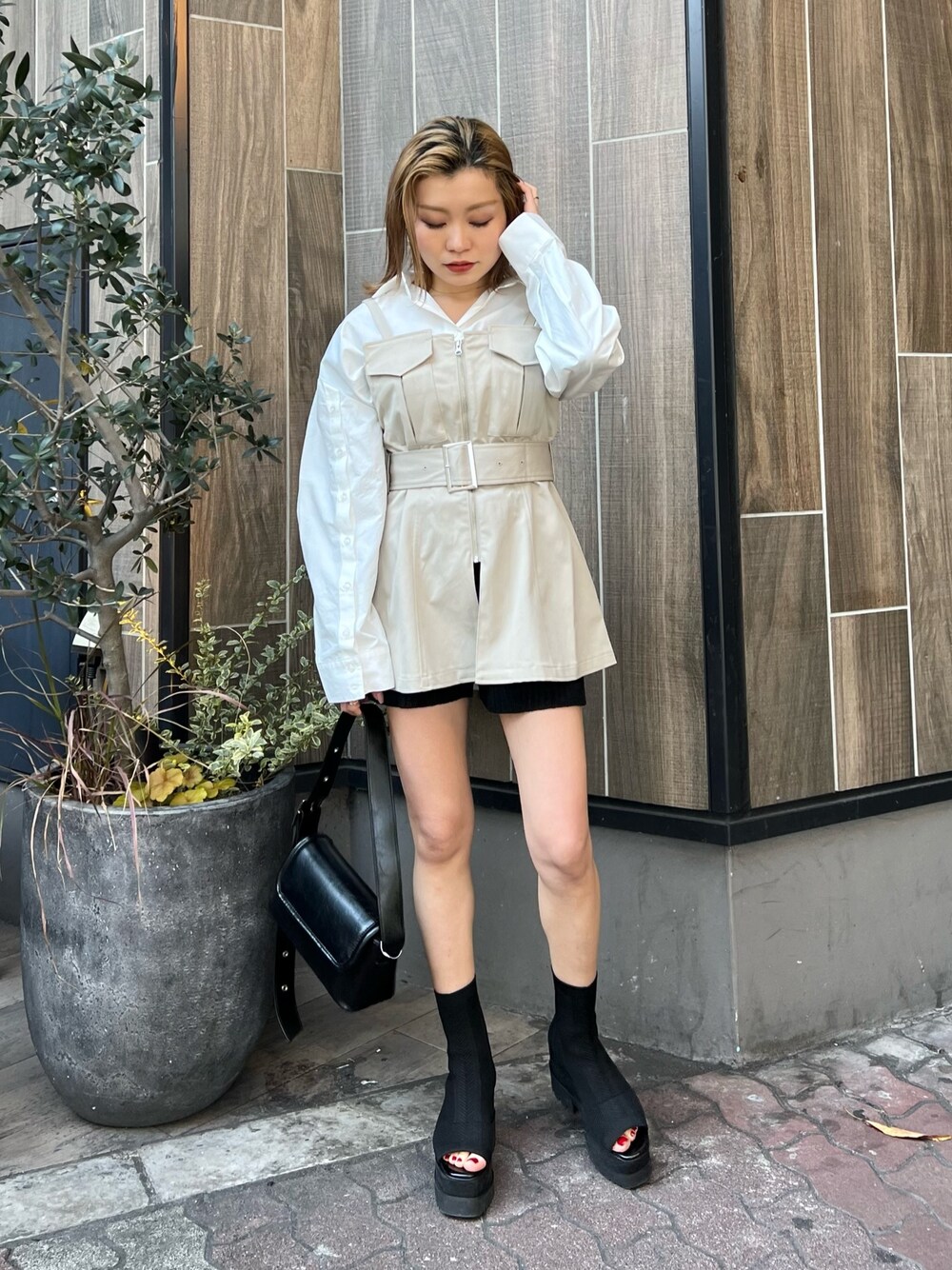 春のお出かけコーデ♩ 【shirt】デイリー使いしやすいクロップドシャツ!袖を開けて肌見せするとよりトレンド感UPします。今回はインナーとして着用しました♡ 【tops】トレンドのビスチェは取り入れるだけでコーデがワンランクUP◎シンプルになりがちな春夏コーデのレイヤードにおすすめ!ウエストマークがしっかりできるので低身長さんも取り入れやすいです! 【pants】大人気のニットパンツ!!太めのウエストリブ細見えさせてくれます。ドライタッチ素材なので夏でも着用できます。 【shoes】大人気のソックスブーツが夏仕様に。傾斜が少なく安定感のあるソールで履きやすさ抜群◎イチオシシューズです!