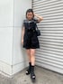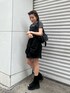 トレンドブラックコーデ♩ 【tops】大人気のmumuロゴシリーズ!クロップド丈のコンパクトなサイズ感でインナーにもおすすめです♡ロゴ部分はクリアのぷにぷにした質感です。 【one-piece】トレンドのカーゴデザインのミニワンピが登場♡大きめの立体ポケットがよりカジュアル感◎低身長さんはウエストのドロストをきつめに絞ったメリハリを付けるスタイルがおすすめです! 【shoes】大人気のソックスブーツが夏仕様に。傾斜が少なく安定感のあるソールで履きやすさ抜群◎イチオシシューズです!