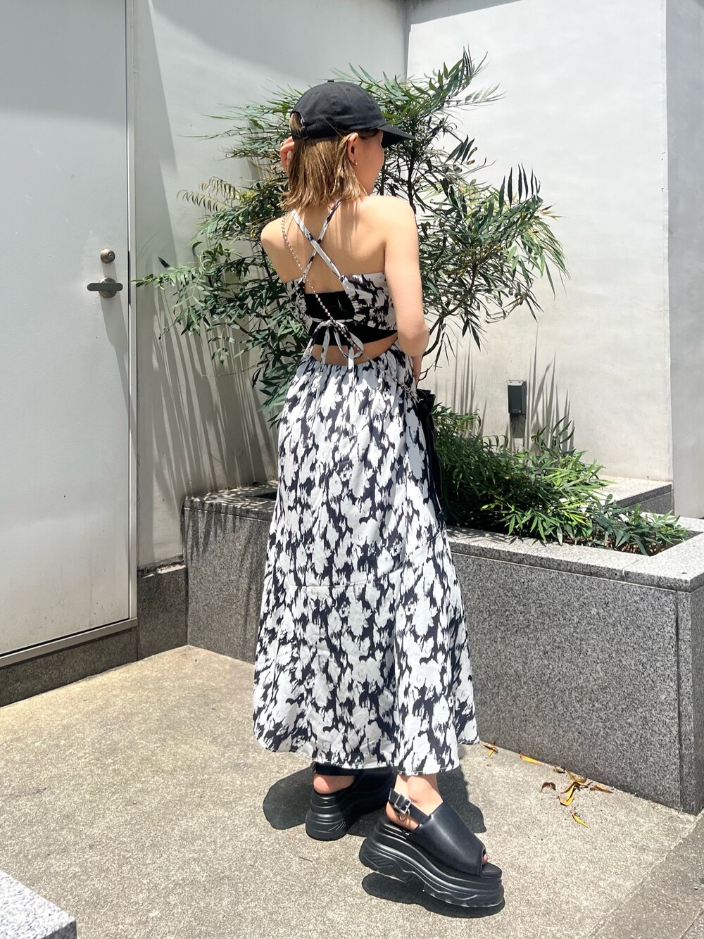 肌見せヘルシーコーデ♩ 【one-piece】夏ムード高まる主役ワンピ♡バックスタイルの肌見せがイチオシPoint◎肩紐で長さも調整できます!ワンピ以外のアイテムをブラックで合わせるとまとまりのあるコーデになります。 【shoes】トレンドのスポーティー感をプラスしてくれる厚底サンダル!傾斜が少なく疲れにくいです◎甲の部分はスポンジのようなふわふわな質感です。