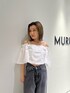 大人フェミニンコーデ♩ 【tops】夏にピッタリなオフショルブラウス♡着るだけで女性らしさがUP!!クロップト丈なのでハイウエストボトムと合わせるとスタイルアップします◎ 【denim】どんなコーデにも合わせやすいワイドデニム♡ウエスト、ポケットの位置が高くスタイルUP◎丈はロング丈なので低身長はロールアップもおすすめです! 【shoes】デザインヒールがポイント!アクセサリー感覚で着用できます♡中敷き全体がふわふわのクッション入りで履き心地も良いです!