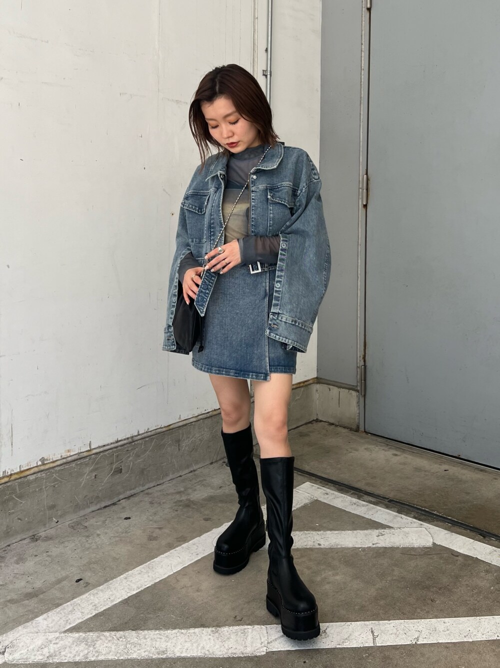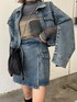 この秋イチオシSETUP!! 【jacket】低身長さんにもおすすめのクロップド丈!ポケットデザインとフロントジップが今年っぽい♡袖はスリットにもできるのでインナーチラ見せが可愛いです! 【skirt】オールシーズン着回せるミニスカ!ストレッチのある素材とウエストゴムで履き心地も抜群です◎ 【tops】秋におすすめのシアートップス!絶妙なニュアンスカラーがオシャレ見えさせてくれます♡レイヤードコーデにもおすすめです! 【shoes】秋冬には欠かせないロングブーツ!厚底でスタイルアップ◎ストレッチ性抜群で安定感があり歩きやすいです!