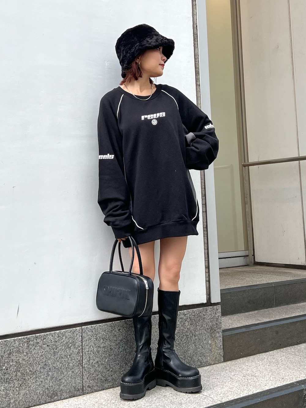 楽ちんスウェットコーデ♩ 【tops】スポーティーなデザインがトレンド感◎ルーズなサイズ感で楽ちんです。148cmだとワンピ風にも着用できます♡ 【shoes】秋冬には欠かせないロングブーツ!厚底でスタイルアップ◎普段22.5cm着用でSサイズでぴったりです。