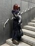 ニットが主役のブラックコーデ♩ 【tops】インパクトのある柄がコーデの主役アイテムに♡シャギー素材で暖かく着心地も◎首元のハーフジップでスタイリングを変えられます! 【skirt】MURUAらしいアシメデザインのマーメイドスカート!足元に動きが出るので華やかな印象に。ウエストはゴム仕様でストレスフリー◎148cmだとくるぶし丈です。 【shoes】軽くて安定感もあるので長時間の着用にもおすすめ!普段22.5cmでSサイズでぴったりです◎